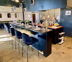 Lot 2071 - Modern high stool featuring a sleek black velvet upholstery with a curved backrest for added comfort. The stool has a sturdy metal frame with a minimalist design, suitable for contemporary kitchen or bar settings. Sold bid price x 2.